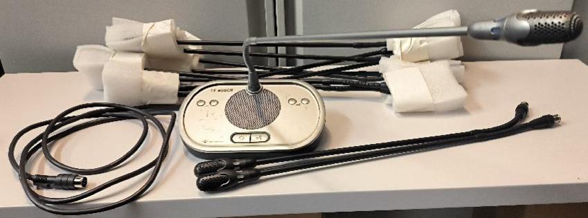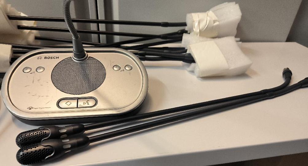 Poste de conférence de marque Bosch modèle WK-1018 avec ses 10 micros supplémentaires. Non testé. Localisation : 30 rue Beauregard 60440 Nanteuil-le-Haudouin
