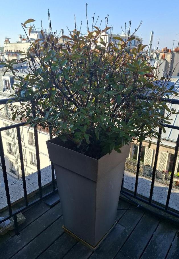 Pot rectangulaire en plastique couleur taupe avec plante naturelle (diverses espèces d’arbustes). Dimension pot: 80 x 44 x 44 cm. (lourd). 20 unités. Vendu à l’unité avec faculté de réunion. Localisation: 26 rue Cambaceres – 75008 Paris. (6eme: 4 unités + 7eme: 16 unités)