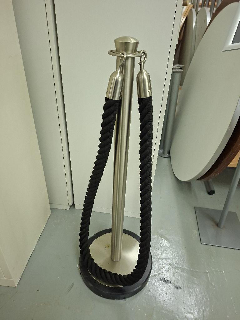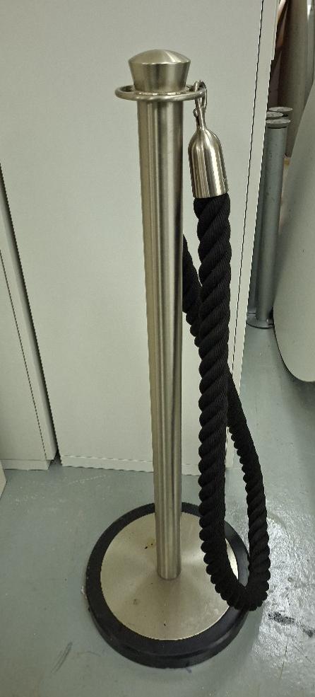 Poteaux guide file avec cordon en tissu torsadé noir. Hauteur 97 cm. 6 unités. Localisation: -1 réserve (4 unités) / Restaurent (2 unités)