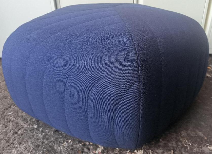 Pouf design Anderssen & Voll modèle Five édition Muuto, recouvert de tissu Kvadrat de couleur bleu marine. Dim : 45 x 88 x 88 cm. Localisation : 30 rue Beauregard - 60440 Nanteuil-le-Haudouin