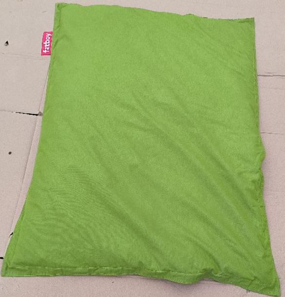 Pouf géant de marque Fatboy de couleur vert et gris, tissu en nylon et rembourrage haute qualité, utilisation intérieur et extérieur. 155 x 120 cm. 3 unités (2 gris + 1 vert). Vendu à l’unité avec faculté de réunion. Localisation : 30 rue Beauregard 60440 Nanteuil-le-Haudouin.