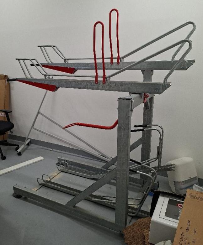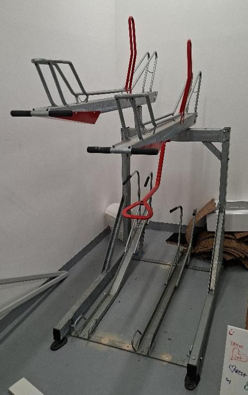 Rack à vélos 2 étages pour quatre vélos. 2 unités. Vendu à l’unité avec faculté de réunion. Localisation: 5 rue des Italiens – 75009 Paris