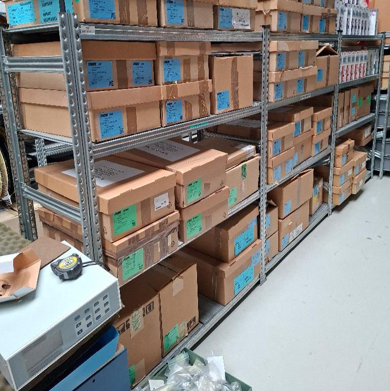 Rayonnage en acier bleu et gris à 6 étaagères. 10 unités. Localisation: 30 rue Beauregard 60440 Nanteuil-le-Haudouin.