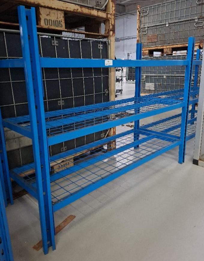 Rayonnage en acier laqué bleu. 100 x 250 x 51 cm