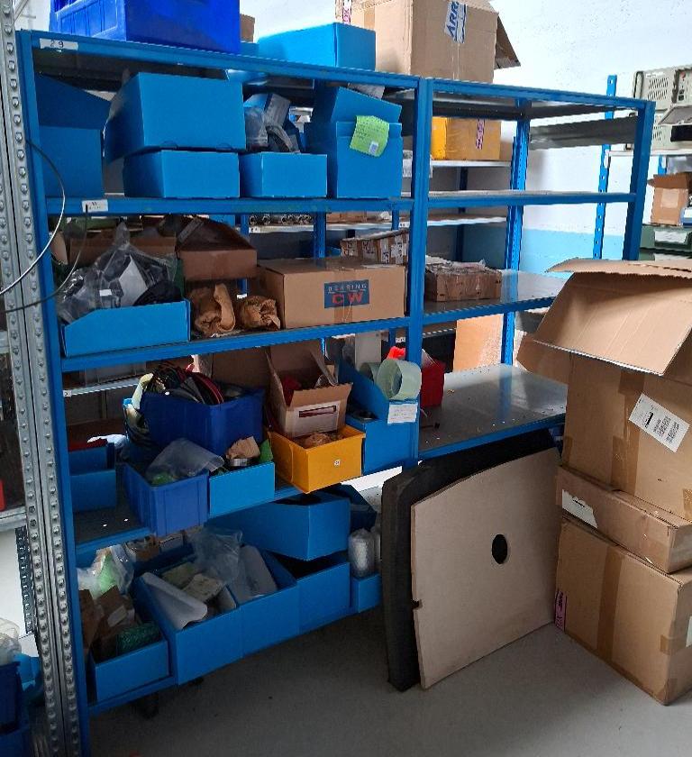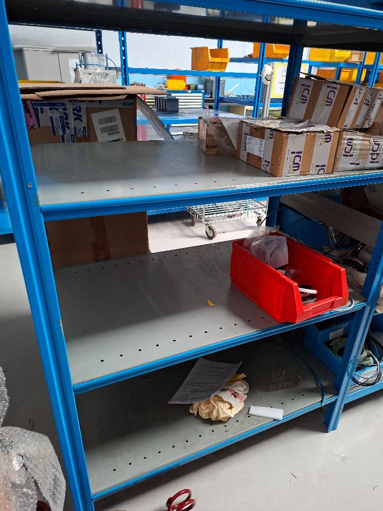 Rayonnage en acier laqué bleu. 180 x 208 x 62 cm