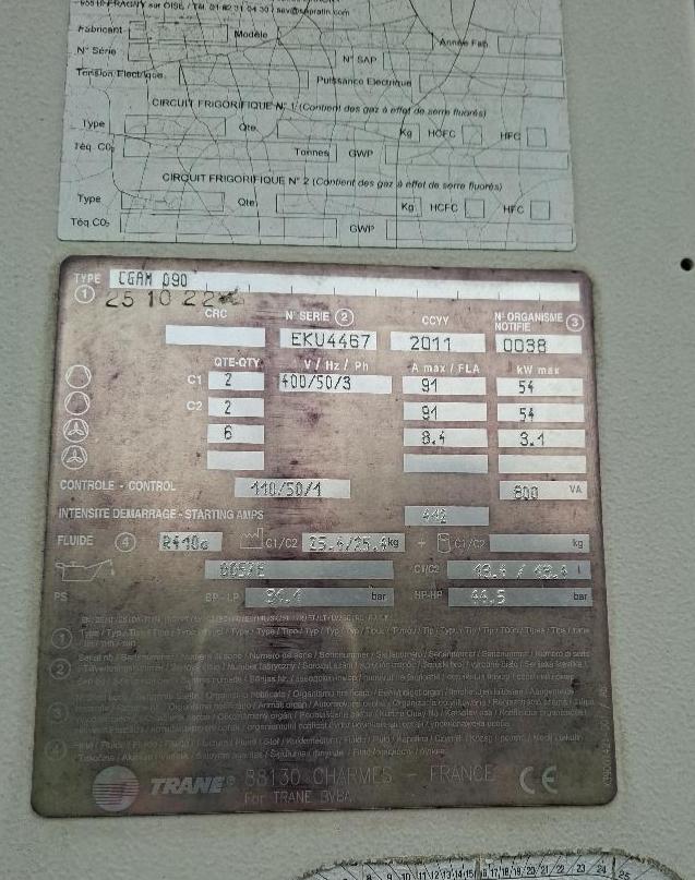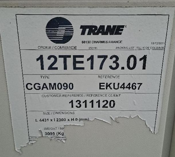 Refroidisseur d’air de marque Trane type CGAM 090 (voir détails sur photos). A démonter