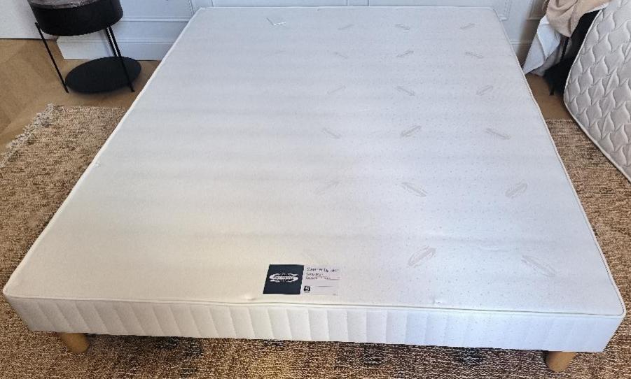 Sommier avec 2 pieds sur roulettes de marque Simmons, 200 x 160 cm. 14 unités. Vendu à l’unité avec faculté de réunion. Localisation: BLB, 3 rue de la Fossé aux Leux – 91700 Sainte Geneviève des Bois