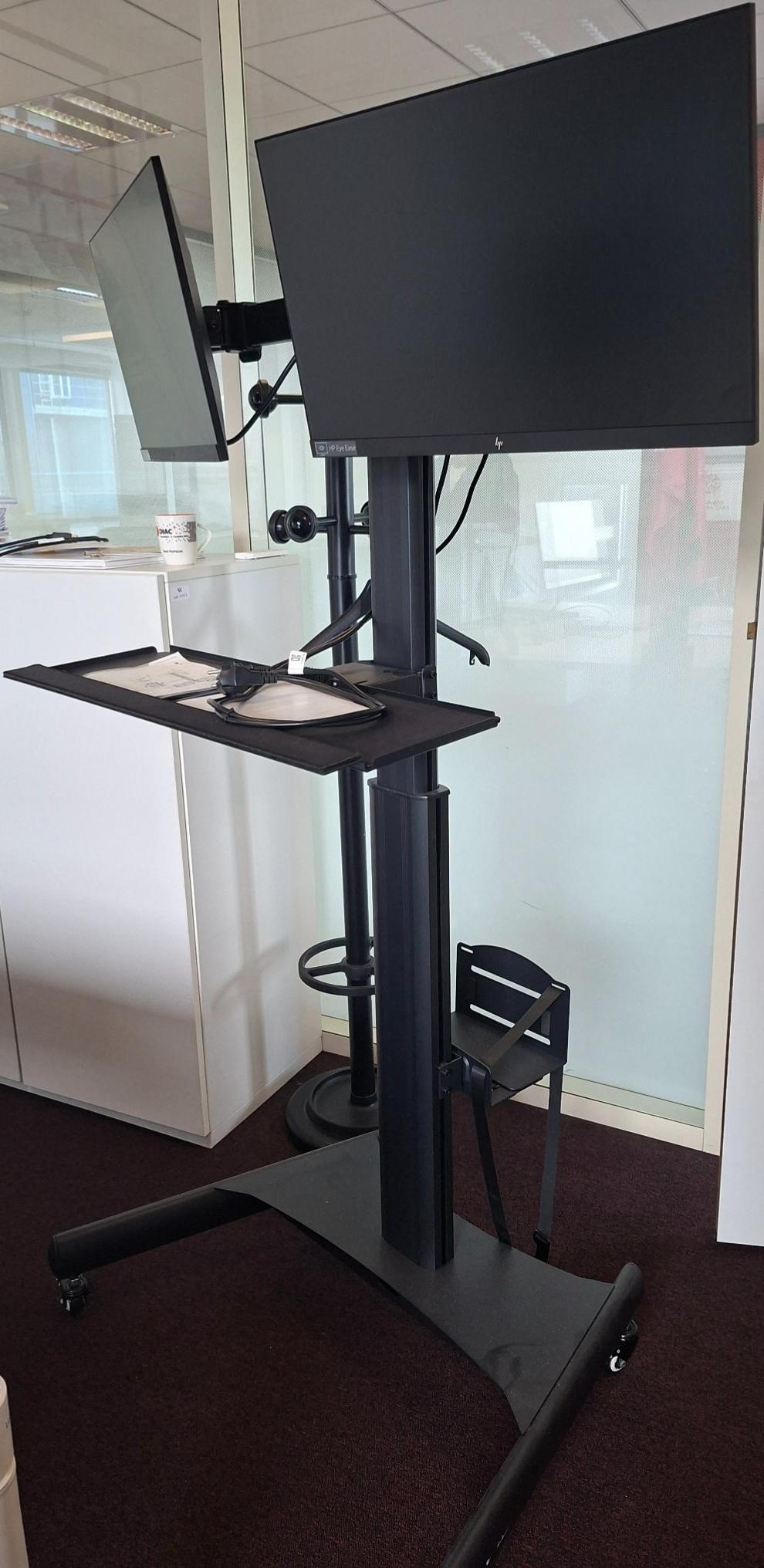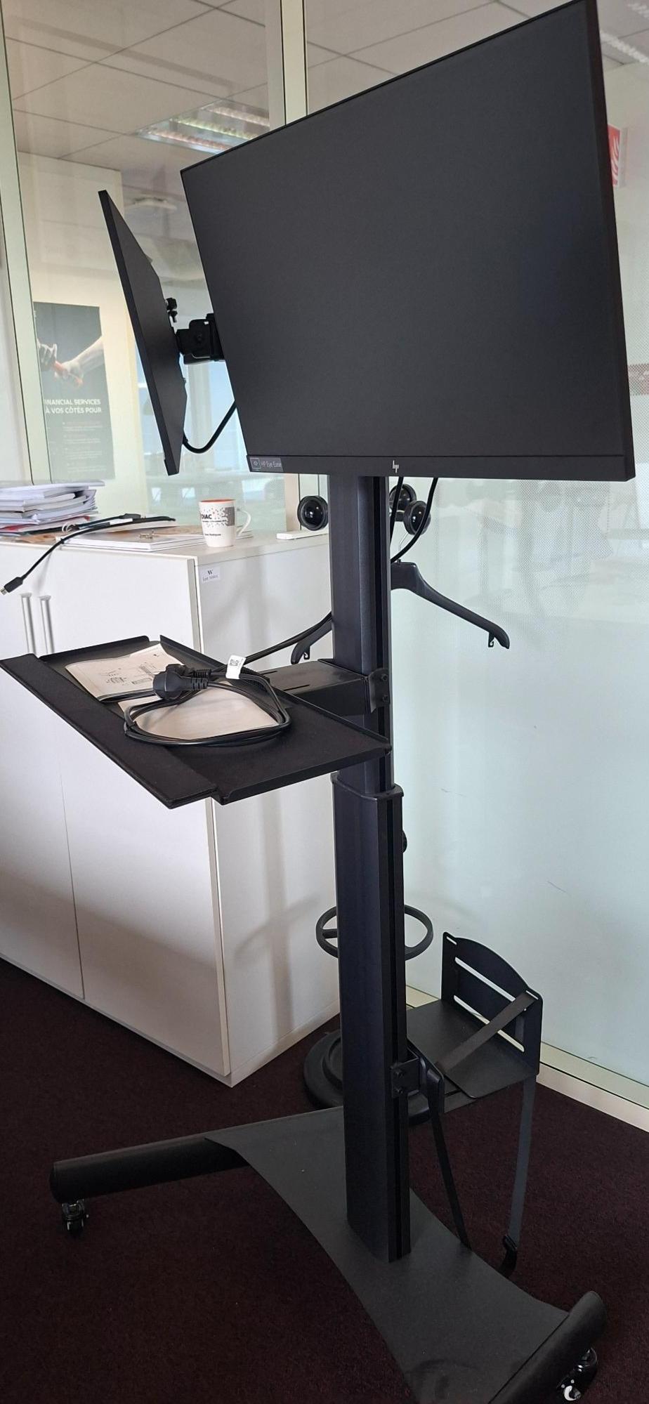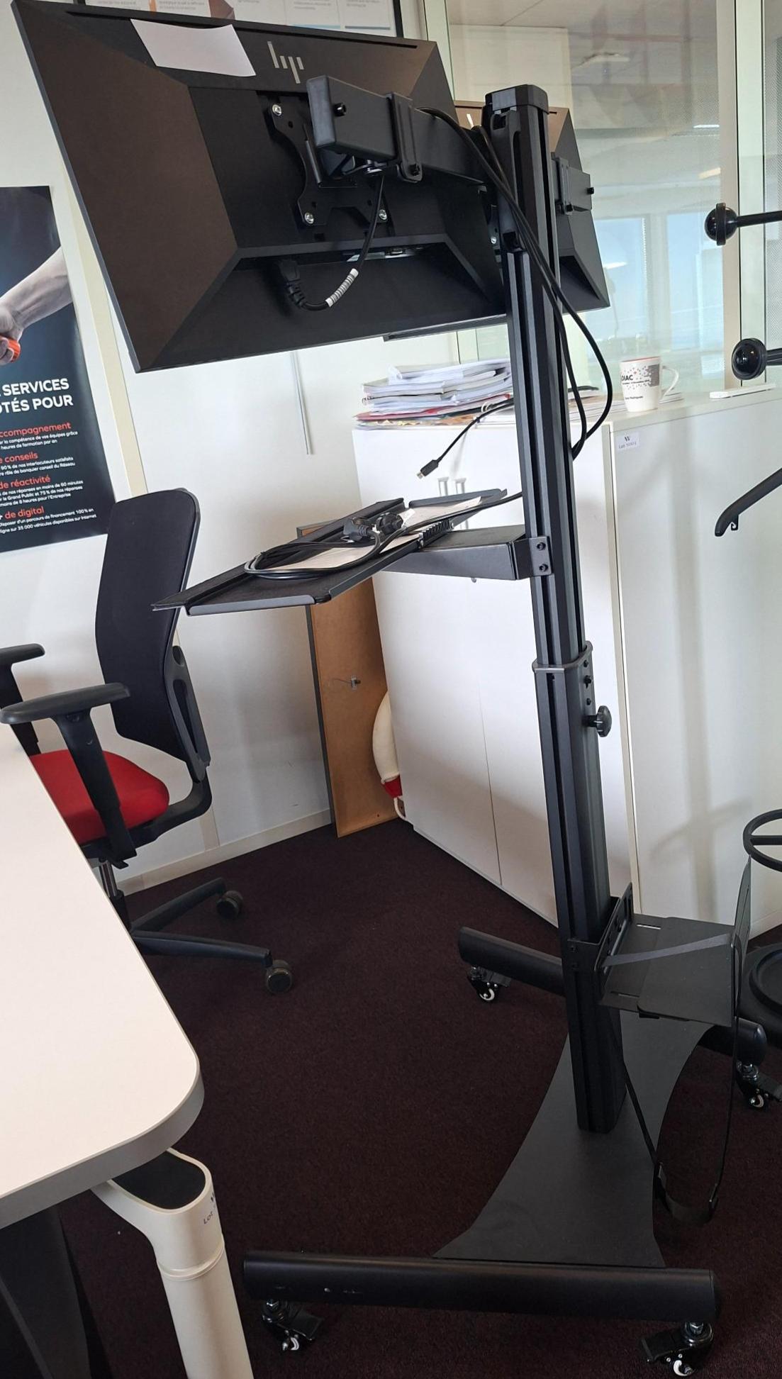 Support écran / TV sur pied mobile (vendu sans écran). Dim : 160 x 87 x 70 cm. 1 UNITÉ AU TOTAL. (étiquette 5089) 5ème étage bureau direction DV : 1 unité