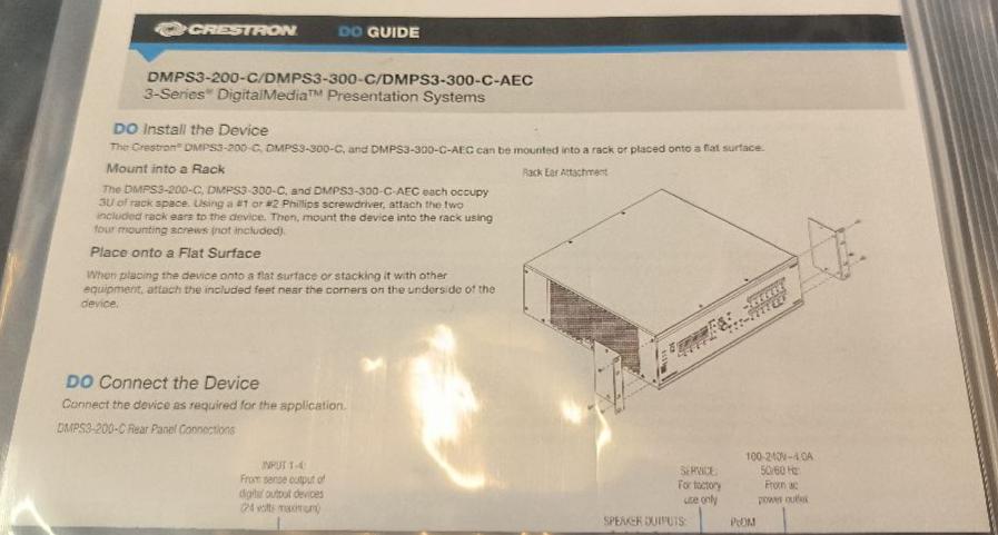 Système De Présentation DigitalMedia 3-Series de marque Creston modèle DMPS3-200-C. Non testé. Localisation : 30 rue Beauregard 60440 Nanteuil-le-Haudouin
