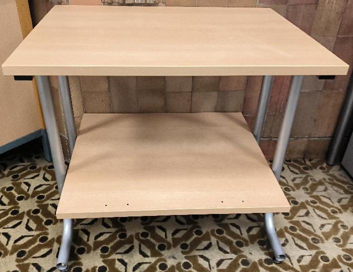 Table d’appoint avec deux plateaux en bois naturel et piétements en métal de couleur gris. Dim : 73 x 80 x 60 cm. 115 UNITÉS AU TOTAL. (étiquette 5039)