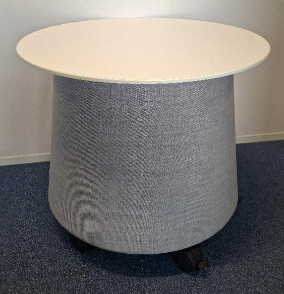 Table d’appoint sur roulettes de marque OrangeBox modèle AD-92, plateau rond en bois stratifié blanc, socle en tissu gris. 51 x 60 cm. 2 unités. Vendu à l’unité avec faculté de réunion. Localisation: Tour Coeur Défense – 92400 Courbevoie (TA 26ème)
