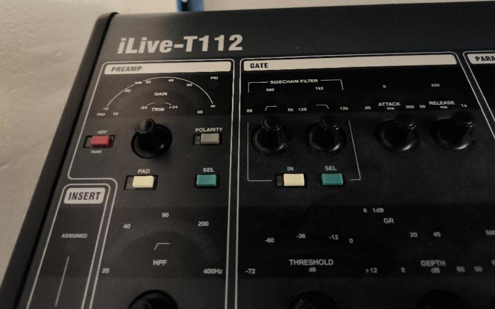Table de mixage de marque Allen&Heath modèle iLive-T112. Dim : 30 x 107 x 65 cm. Non testé. Localisation : 30 rue Beauregard 60440 Nanteuil-le-Haudouin
