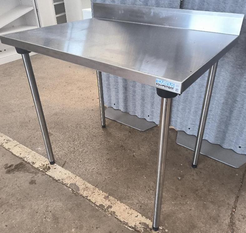 Table de préparation adossée en inox alimentaire de marque Tournus. Dim : 100 x 100 x 70 cm. Localisation : 34 avenue du Général Patton 02880 Crouy