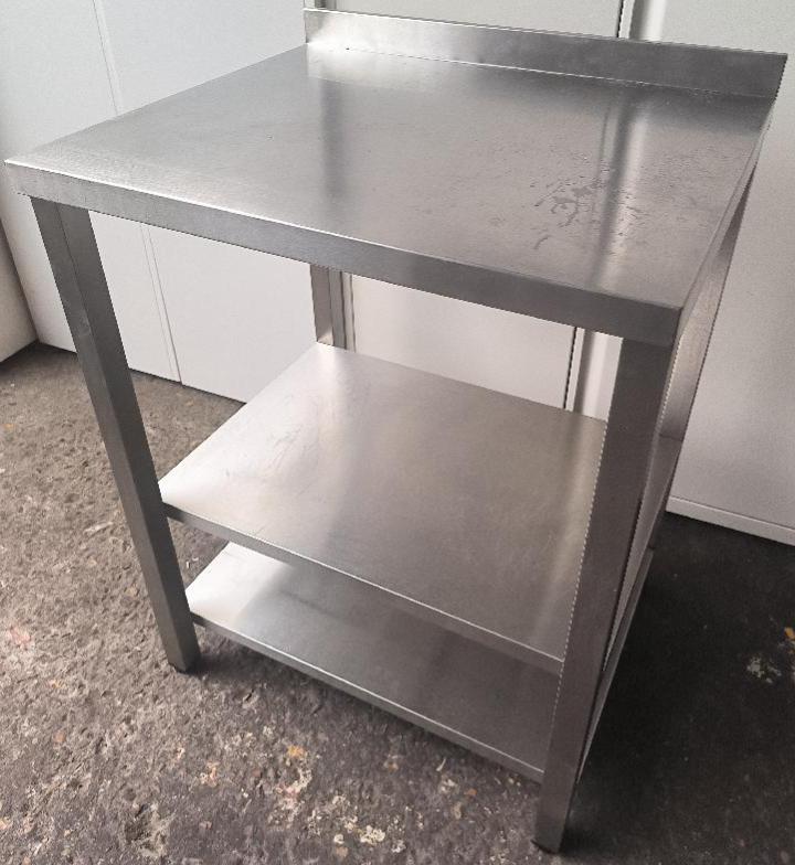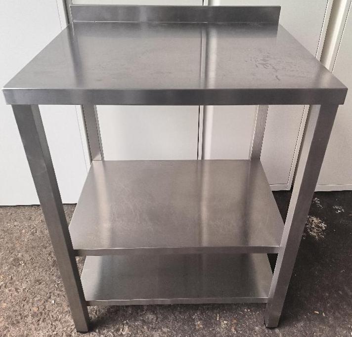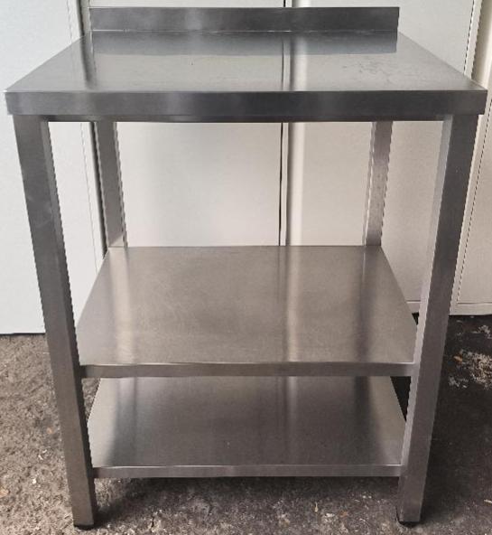 Table de préparation adossée en inox alimentaire. Dim : 95 x 70 x 60 cm. Localisation : 30 rue Beauregard - 60440 Nanteuil-le-Haudouin