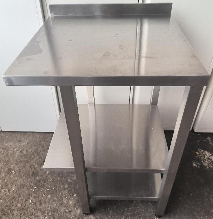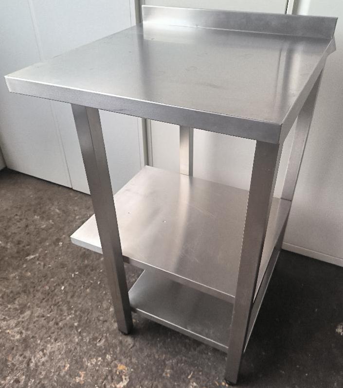 Table de préparation adossée en inox alimentaire. Dim : 97 x 60 x 60 cm. Localisation : 30 rue Beauregard - 60440 Nanteuil-le-Haudouin