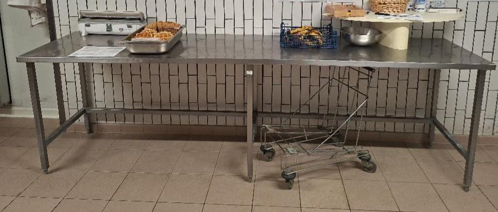 Table de préparation en inox alimentaire. 90 x 300 x 70 cm. Localisation: cuisines