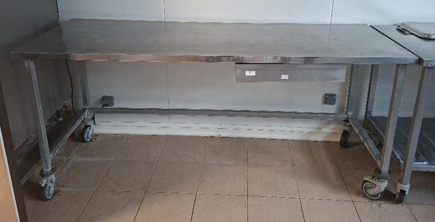 Table de préparation sur roulettes avec 1 tiroir en ceinture. 90 x 200 x 70 cm. Localisation: cuisines