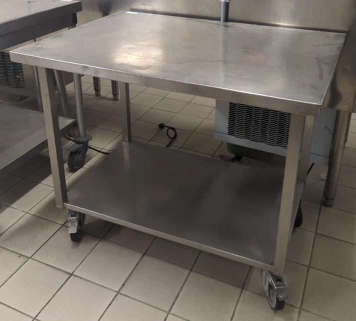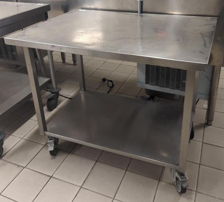 Table de préparation sur roulettes en inox alimentaire. 85 x 100 x 70 cm. Localisation: Tour Coeur Défense - 92400 Courbevoie