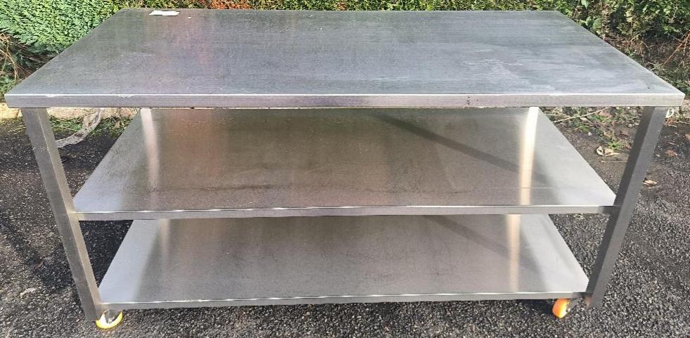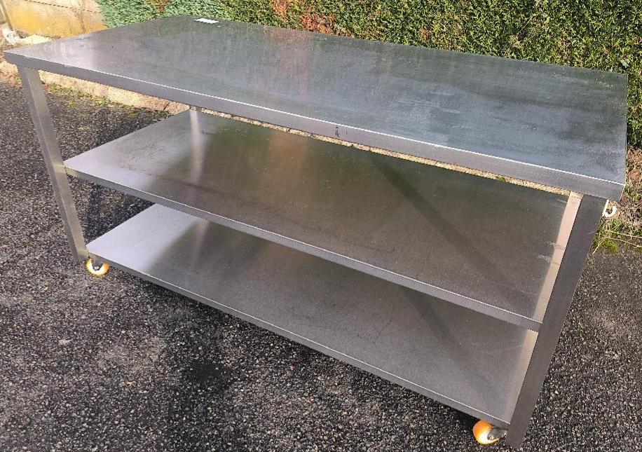 Table de préparation sur roulettes en inox alimentaire. Dim : 90 x 170 x 80 cm. Localisation : 30 rue Beauregard - 60440 Nanteuil-le-Haudouin – Image 2