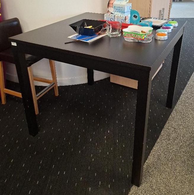 Table haute en bois laqué noir, plateau carré reposant sur 4 pieds droits. 96 x 110 cm. 3 unités. Vendu à l’unité avec faculté de réunion. (5ème: 1 + rdc: 2). Localisation: 10 rue d’Arcueil – 94150 Rungis