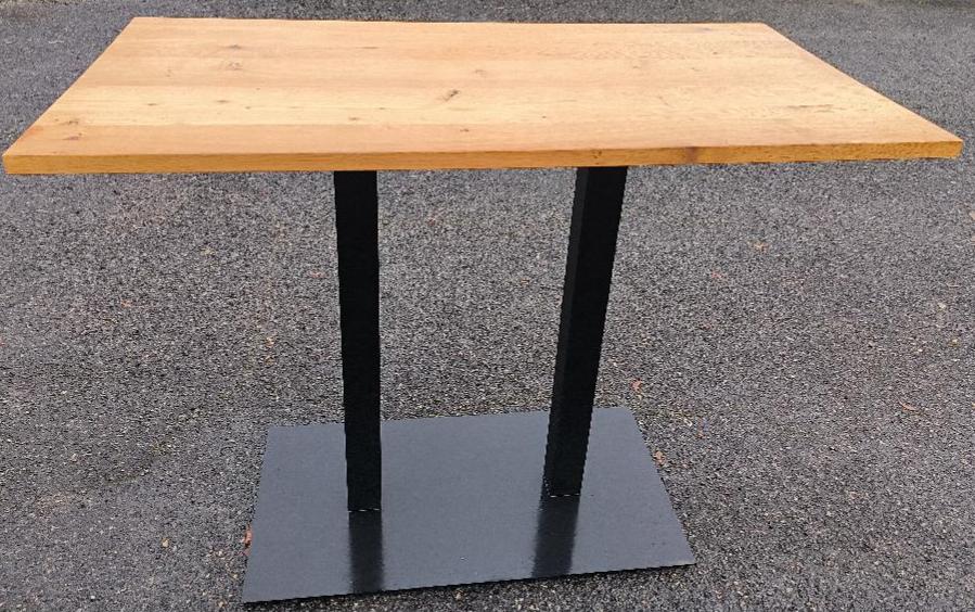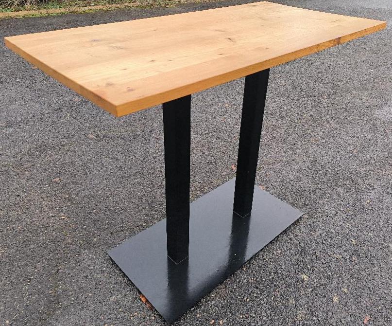 Table haute rectangulaire, plateau en bois de couleur hêtre, piétement en métal noir. Dim : 110 x 140 x 70 cm. 2 unités. Vendu à l’unité avec faculté de réunion. Localisation : 30 rue Beauregard 60440 Nanteuil-le-Haudouin