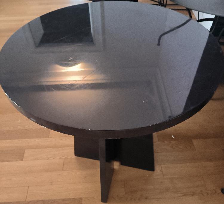 Table haute ronde en bois laqué de couleur noire. Dim : 90 x 80 cm. 2 unités. Vendu à l’unité avec faculté de réunion. Localisation: BLB, 3 rue de la Fossé aux Leux – 91700 Sainte Geneviève des Bois
