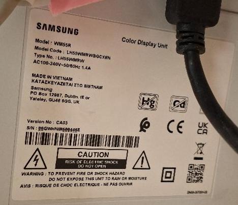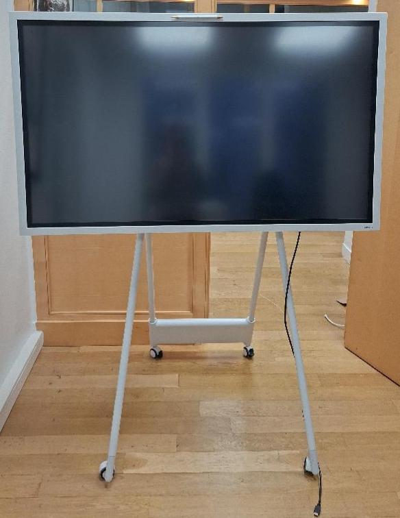 Tableau interactif 55 pouces de marque Samsung modèle Flip WM55R, sur support à roulettes. Localisation: 10 rue du Ballon – 93160 Noisy-Le-Grand