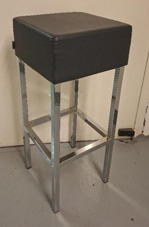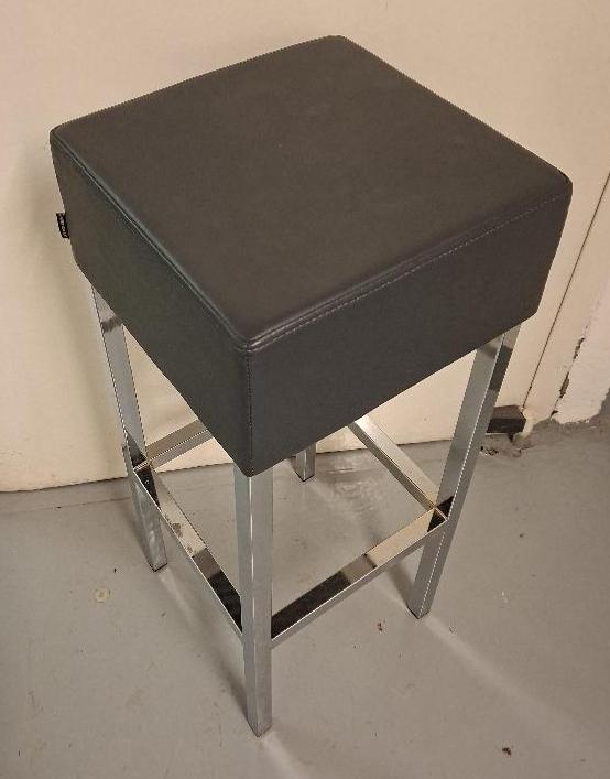 Tabouret haut de marque Pedrali, assise en simili cuir noir, piétement en acier chromé. 80 x 32 x 32 cm. 3 unités. Localisation: -1 réserve – Image 3