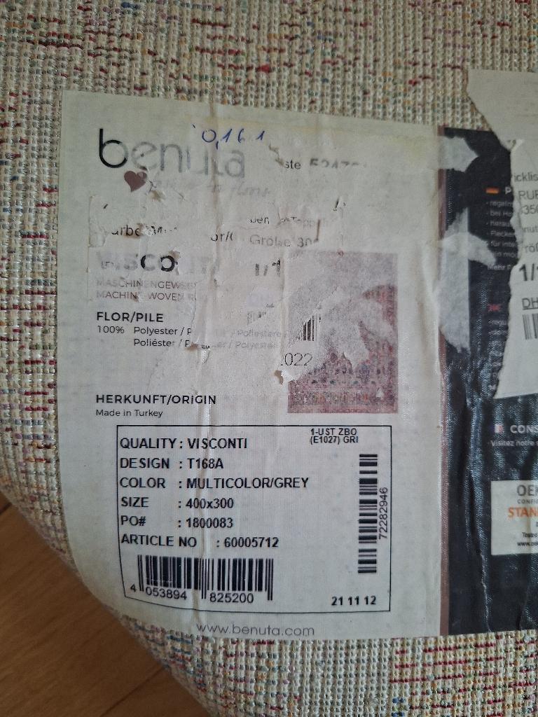 Tapis mécanique de marque Benuta dans les tons rouges et gris. 400 x 300 cm. Localisation: BLB, 3 rue de la Fossé aux Leux – 91700 Sainte Geneviève des Bois