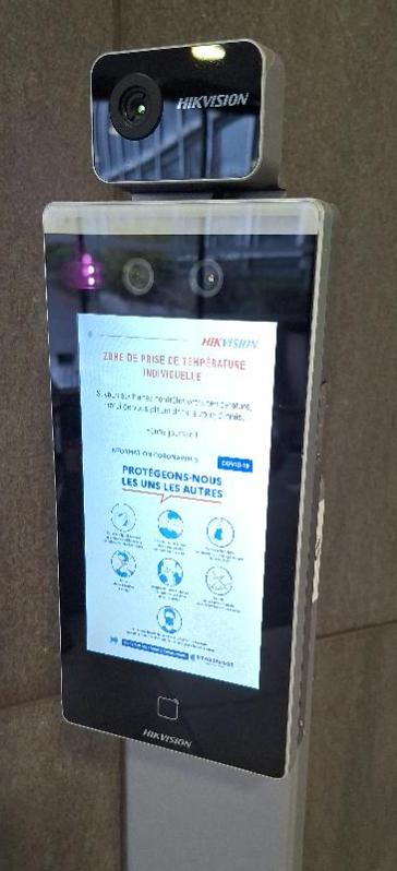Terminal de dépistage de température de marque Hikvision modèle DS-K56064A-3XF/V. 140 x 17 x 25 cm. 2 unités. Vendu à l’unité avec faculté de réunion. (rdj cafet + accueil, étiquette 156)