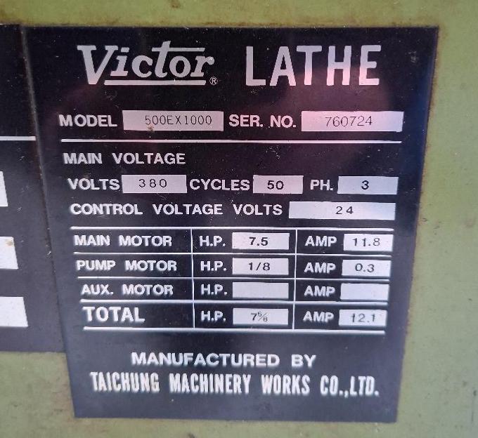 Tour à métaux de marque Victor Taichung modèle 500EX1000 (voir détails sur photos)