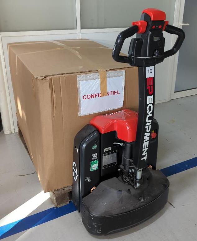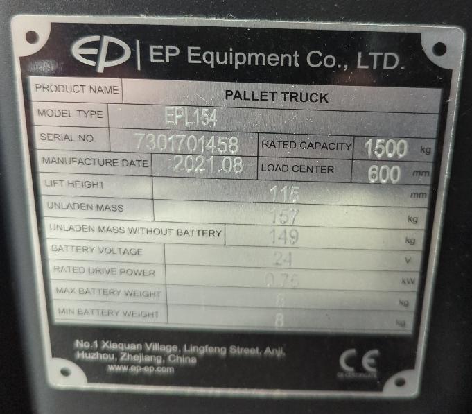 Transpalette électrique de marque EP Equipements modèle EPL154, capacité 1500 kg. (rdj)