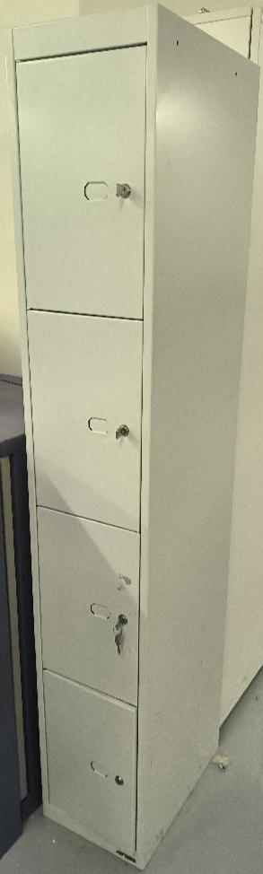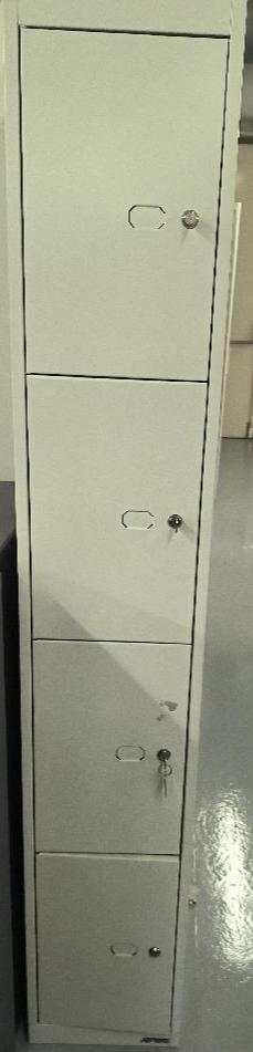 Vestiaire de marque Bisley, comprenant 4 casiers, de couleur gris. Dim : 180 x 30 x 46 cm. 1 UNITÉ AU TOTAL. (étiquette 5092) Niveau -1 réserve : 1 unité