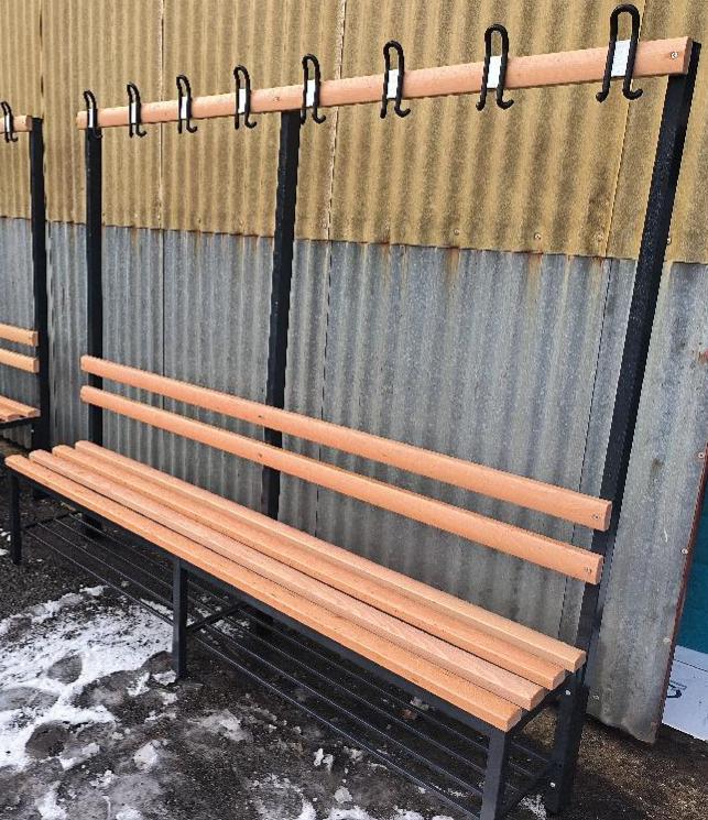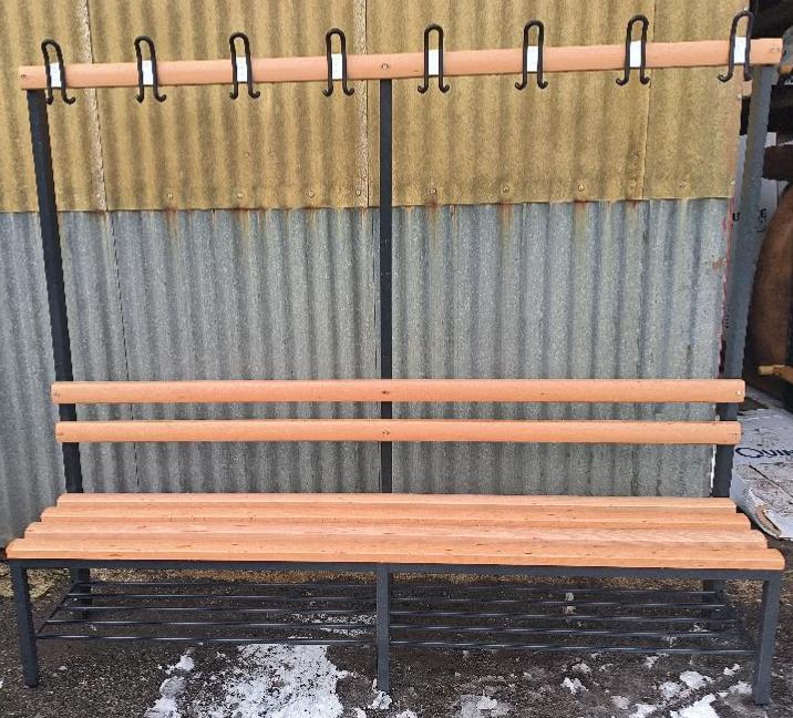 Vestiaire en métal anthracite avec porte-manteau, range-chaussures et banc en bois naturel. Dim : 172 x 195 x 40 cm. Localisation : 30 rue Beauregard 60440 Nanteuil-le-Haudouin