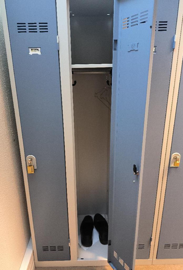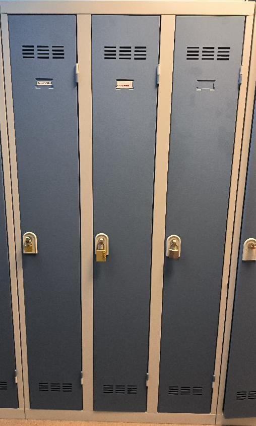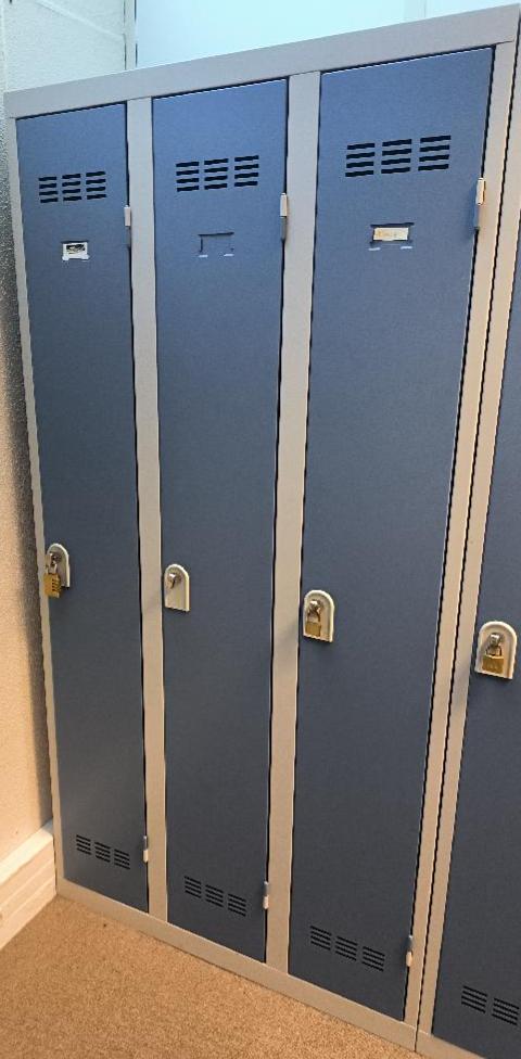 Vestiaire métallique de marque Vinco, de couleur gris et bleu, 3 portes avec verrouillage à cadenas. Dim : 180 x 90 x 50 cm. 3 UNITÉS AU TOTAL. (étiquette 5090)
