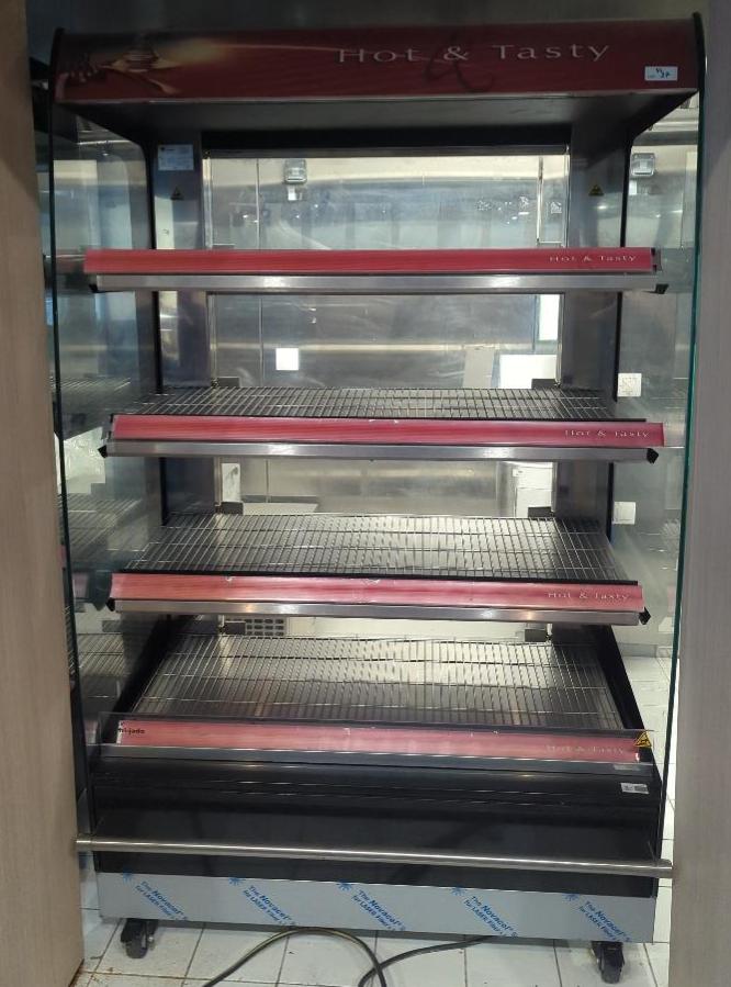 Vitrine de présentation chauffante sur roulettes de marque Fri-Jado modèle Hot & Tasty à 4 étagères. 195 x 120 x 90 cm. 2 unités. Vendu à l’unité avec faculté de réunion. Localisation: Tour Coeur Défense – 92400 Courbevoie